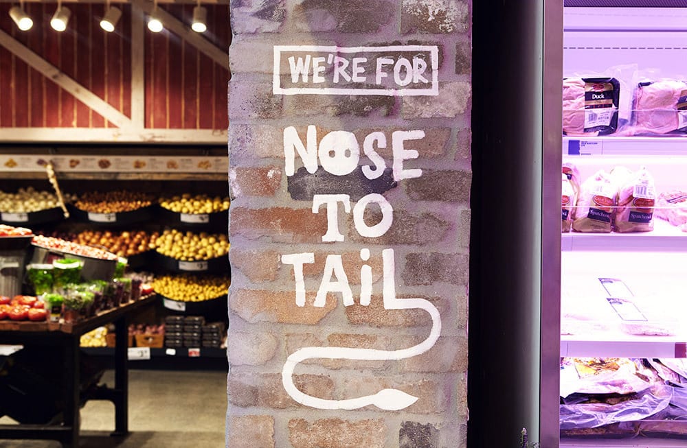 It is brought to life with a complete redesign of everything from price tags, to uniforms and store layout. It's a visual style inspired by farmers' roadside signage. A bright, new language that pays homage to their lo-fi, hand-painted, market heritage.